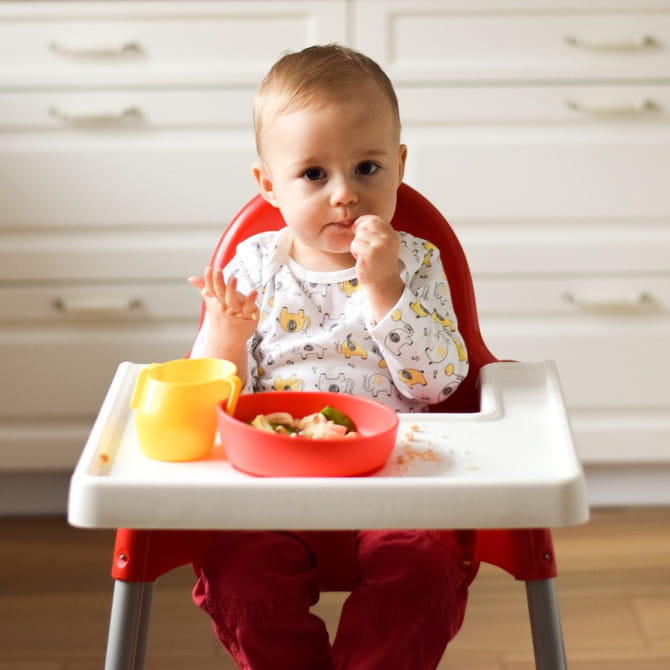 - mocno przysysa się do gładkich powierzchni (stołów, blatów, tac krzesełek do karmienia)