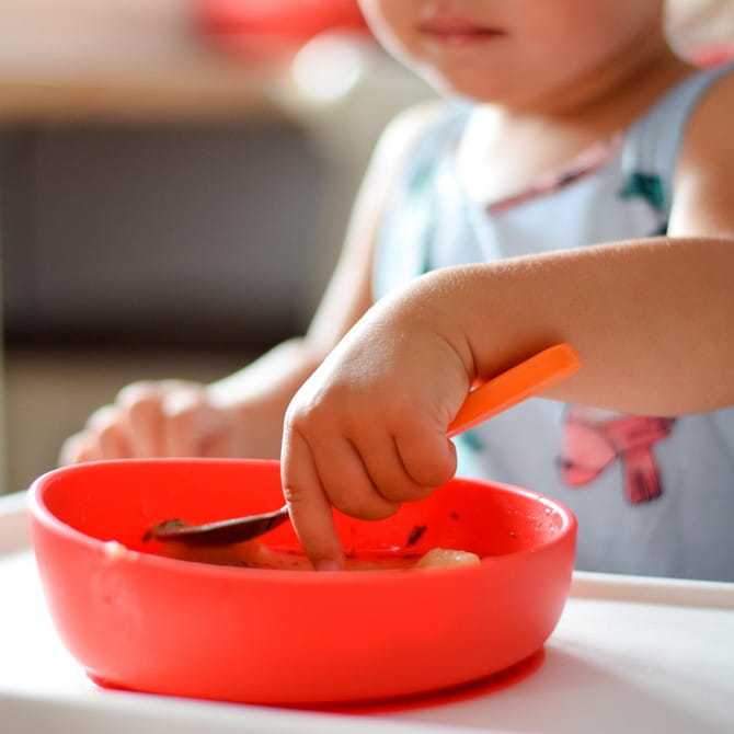 - innowacyjny ścięty kształt, który ułatwia dziecku nabieranie porcji i minimalizuje wypadanie jedzenia z naczynia