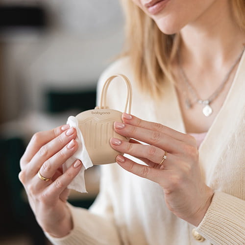 Wystarczy, że przetrzesz etui wilgotną szmatką, umyjesz pod bieżącą wodą lub w zmywarce. Łatwo utrzymasz je w czystości i zapewnisz higieniczne warunki do przechowywania smoczka.