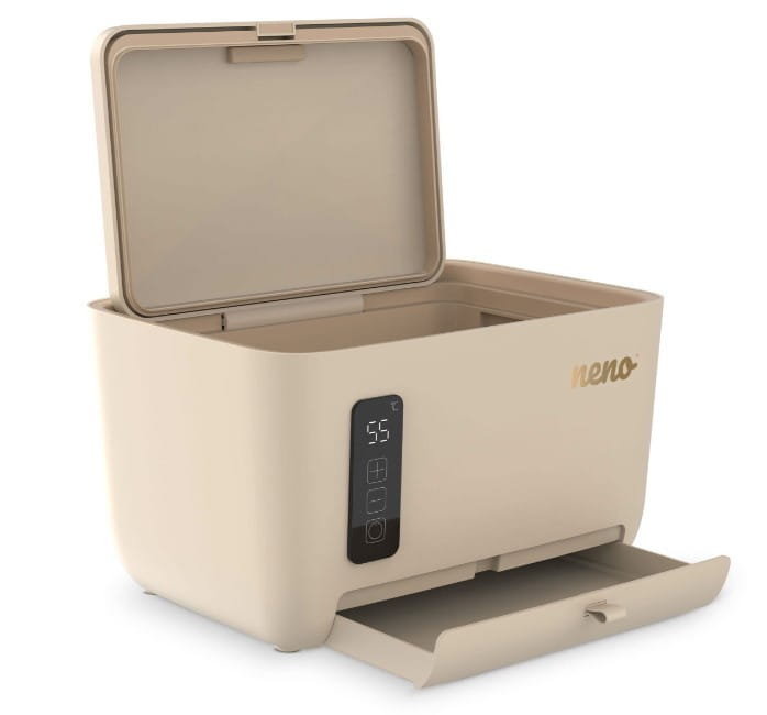 Podgrzewacz Neno Calme działa błyskawicznie, aby zapewnić chusteczkom suchym i nawilżanym idealną temperaturę w krótkim czasie