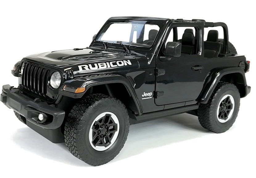 Zdalnie sterowany samochód Jeep Wrangler Rubicon w kolorze czarnym to autentyczna replika w skali 1:14. Samochód za pomocą pilota porusza się do przodu, do tyłu, skręca oraz hamuje. Ze względu na swój terenowy charakter może być stosowany zarówno wewnątrz jak i na zewnątrz. Światła w pojeździe uruchamiają się kiedy jest uruchomiony oraz kiedy jedzie. Drzwi pojazdu są otwierane ręcznie, wnętrze i podwozie pojazdu są zaprojektowane bardzo dokładnie z dbałością o zgodność z oryginalnym pojazdem. Zdalnie sterowany Jeep jest kierowany za pomocą pilota działającego radiowo, osiąga prędkość 7 kilometrów na godzinę. Pilot ma zasięg około kilkunastu metrów i w przeciwieństwie od pilotów na podczerwień może być bez żadnych problemów używany na zewnątrz przy pełnym słońcu.
