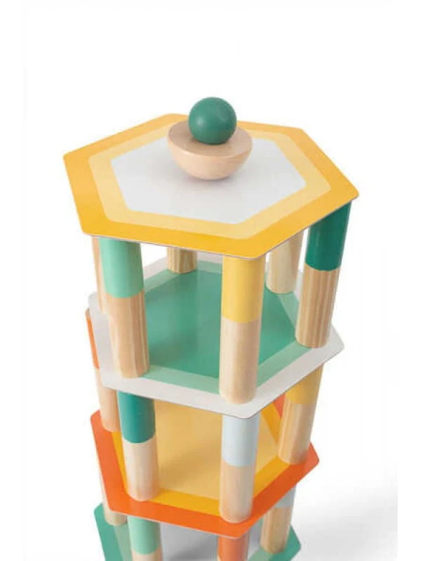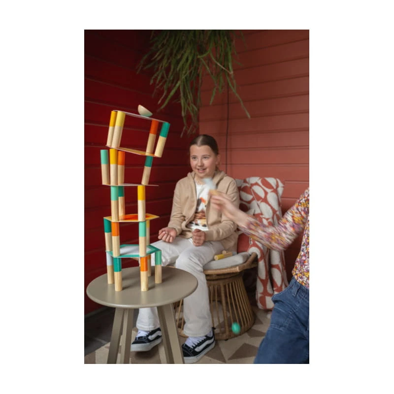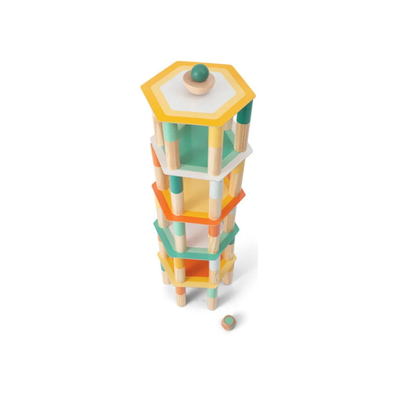 BS Toys Balans XL — Drewniana gra zręcznościowa dla dzieci 5+ (30 klocków, kulka, kostka)