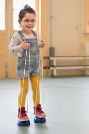Motoryka duża - chodzenie na szczudłach angażuje całe ciało i wzmacnia mięśnie nóg.