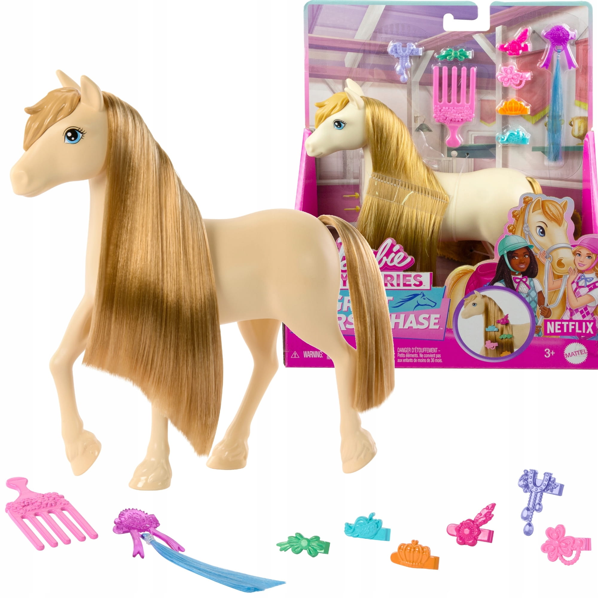 Barbie Konik do stylizacji Tornado z akcesoriami (długa grzywa, grzebyczek, spinki)