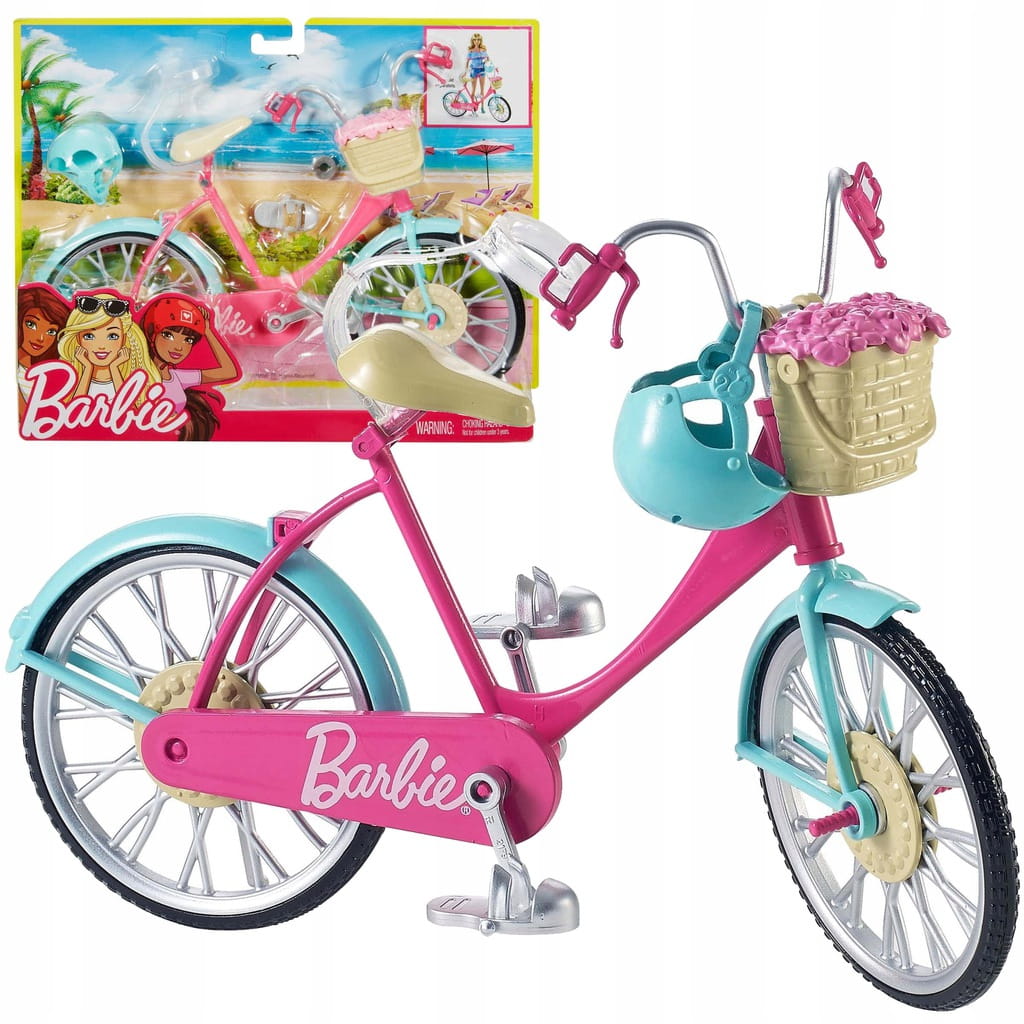 Barbie Rower Rekreacyjny z Kaskiem i Koszykiem – Różowo-Turkusowy, Ruchome Koła i Działające Pedały