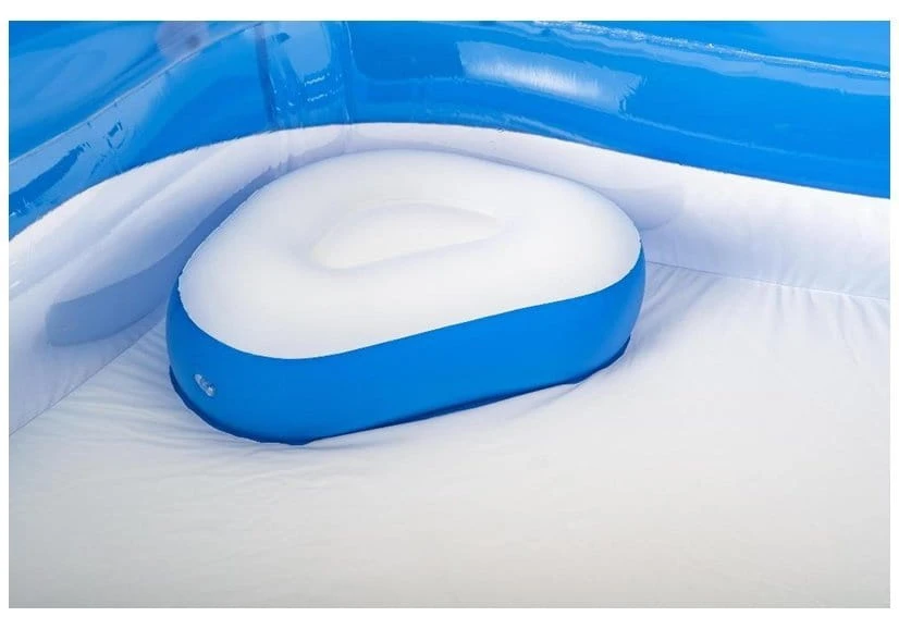 Ten basen przeznaczony jest do relaksu dla całej twojej rodziny i przyjaciół. Jego specjalny kształt oraz wbudowane siedzenia umożliwią Ci spokojny odpoczynek w zaciszu własnego domu. Jego konstrukcja jest stabilna a ścianki zapewnią wygodne oparcie dla Twoich pleców. Jest wykonany z wytrzymałego winylu odpornego na uszkodzenia, oprócz siedziska w basenie znajdują się również zagłówki, które podnoszą standard twojego wypoczynku. Dla Twojej wygody i ułatwienia w ścianki boczne basenu zostały wbudowane otwory na picie abyś mógł mieć do niego dostęp na wyciągnięcie ręki. Jego rozłożenie jest bardzo proste i nie zajmie Ci dużo czasu. Dodatkowo basen ten po złożeniu zajmuje bardzo mało miejsca dzięki czemu będziesz mógł spokojnie przechowywać go poza sezonem bądź zabrać go ze sobą w podróż.
