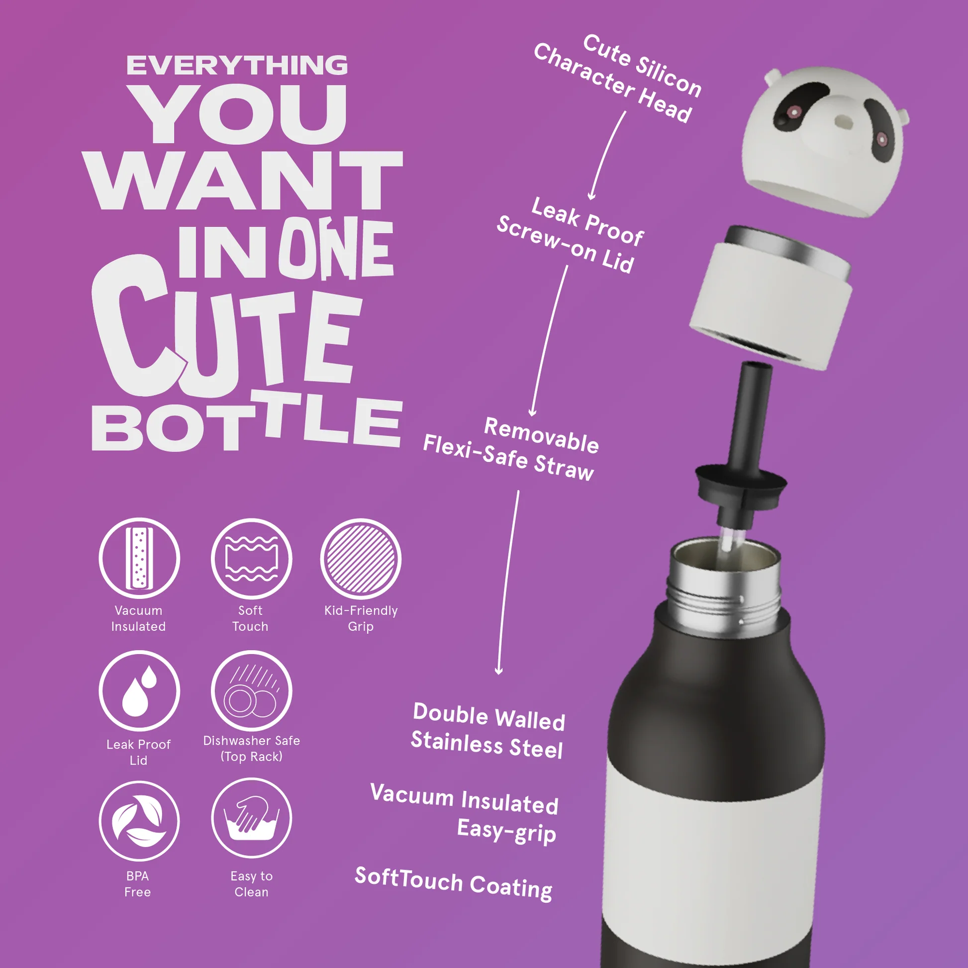Butelka termiczna z słomką Asobu Bestie – Panda 460 ml dla dzieci i dorosłych
