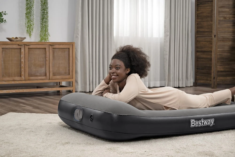 Materac Bestway Tritech Air Mattress to idealne rozwiązanie dla osób szukających wygodnego i trwałego miejsca do spania. Dzięki innowacyjnej technologii Tritech i konstrukcji I-Beam, zapewnia stabilność i odporność na odkształcenia. Wbudowana pompka USB umożliwia szybkie napompowanie, a welurowa powierzchnia zapewnia komfortowy wypoczynek.