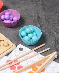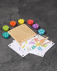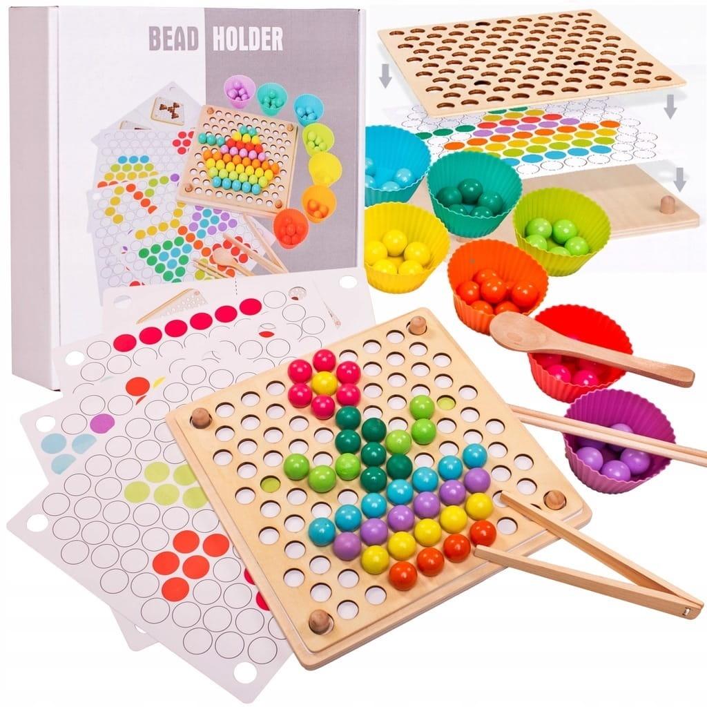 Drewniana mozaika edukacyjna — układanka z kolorowymi kuleczkami i narzędziami (22×22 cm)