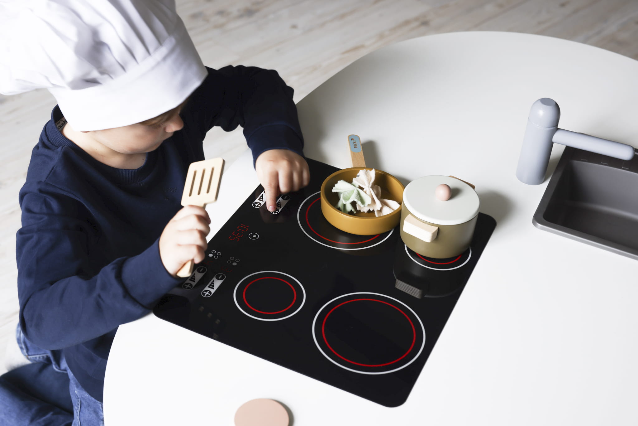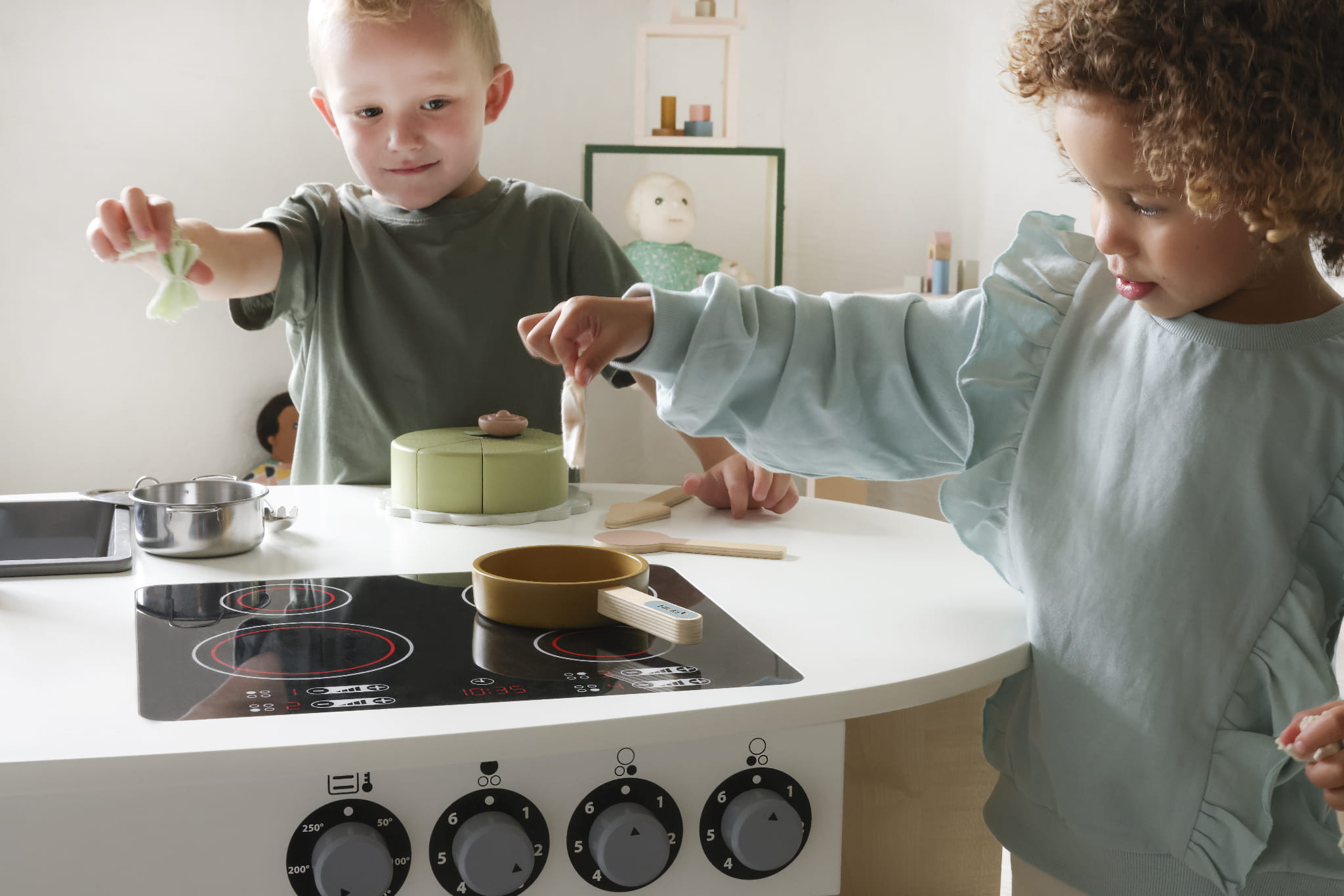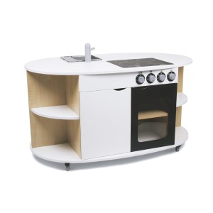 Mali kucharze pokochają tą przepiękną i funkcjonalną wyspę kuchenną, która jest wyposażona w szereg interaktywnych funkcji zapewniających długie godziny niezapomnianej zabawy takich jak piekarnik, 4 palniki z obrotowymi pokrętłami, półki do przechowywania żywności, duży blat roboczy i zlew. Atrakcyjny skandynawski design i staranne wykonanie z dbałością o detale zapraszają dzieci do ekscytującego świata gotowania, kreatywnego odgrywania ról, wspierając przy tym prawidłowy rozwój i zachęcając do nauki poprzez zabawę. Wyspa posiada kółka, dzięki czemu można wygodnie zmieniać jej położenie w zależności od potrzeb.