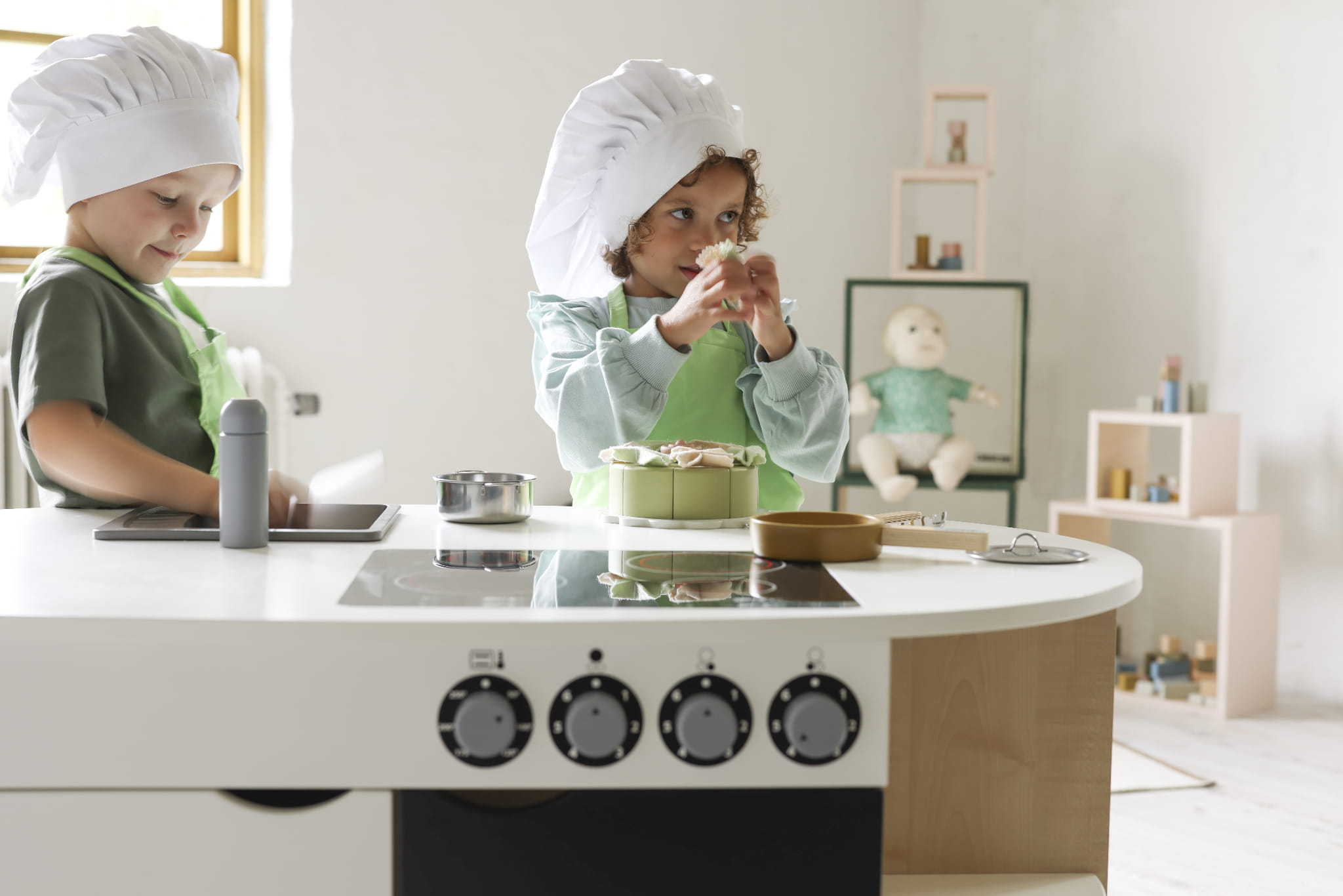 Wypełniona ekscytującymi funkcjami, zaprojektowanymi do wspierania rozbudowanej zabawy w gotowanie zawiera piekarnik, 4 palniki z obrotowymi pokrętłami, półki do przechowywania żywności, duży blat roboczy i zlew. Jej atrakcyjny wygląd zaprasza dzieci do eksperymentowania, kreatywnej zabawy, odgrywania ról i tworzenia zupełnie nowych kulinarnych historii. Rozwija wyobraźnię, motorykę i doskonali umiejętności poznawcze najmłodszych. Oferuje różne scenariusze zabawy w grupie dzięki czemu dzieci mogą czerpać frajdę z realistycznej zabawy w gotowanie w większym gronie małych szefów kuchni.