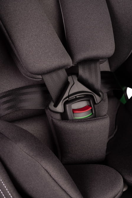 Ergonomiczny przycisk umożliwia szybkie i łatwe dopasowanie pasów bezpieczeństwa, eliminując zbędny wysiłek ze strony rodzica. Boczne wywietrzniki zapewniają odpowiednią cyrkulację powietrza, dbając o komfort skóry dziecka.