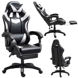 Fotel Gamingowy LEAN Obrotowy Biurowy Z Podnóżkiem Poduszki Czarno-Biały