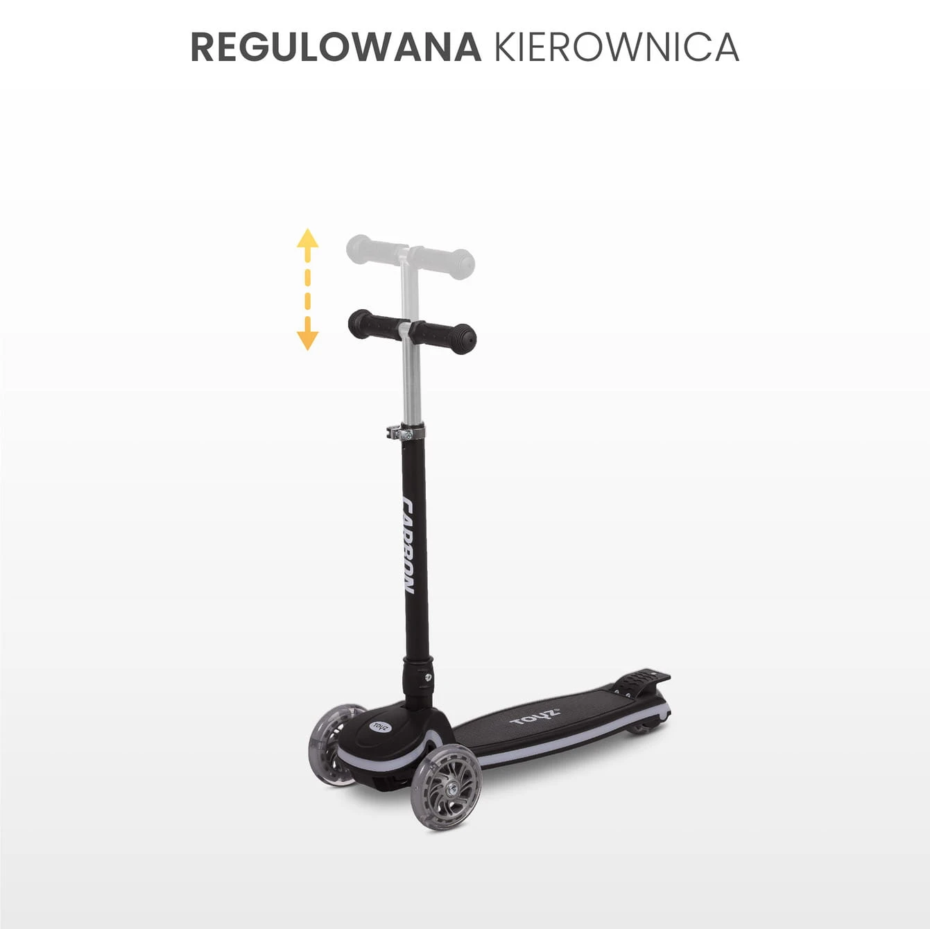 HULAJNOGA BALANSOWA CARBON Z EFEKTAMI ŚWIETLNYMI Hulajnoga dziecięca Carbon została stworzona z myślą o małych odkrywcach, którzy uwielbiają ruch i dobrą zabawę. Charakteryzuje się intensywnymi, żywymi kolorami, które nie tylko zachwycają, ale również zwiększają widoczność dziecka podczas jazdy. Dzięki świecącym kółkom i listwie LED, każda podróż staje się niezapomnianym doświadczeniem. To idealny prezent — funkcjonalny, trwały, dostosowany do potrzeb rosnącego użytkownika! REGULOWANA KIEROWNICA Hulajnoga Carbon jest doskonałym wyborem dla dzieci od 3 roku życia. Posiada 3-stopniową regulację kierownicy, co pozwala na dostosowanie jej wysokości do wzrostu dziecka. Dzięki temu zapewnia ergonomiczną pozycję podczas jazdy i wydłuża okres użytkowania. STEROWANIE ZA POMOCĄ BALANSU CIAŁA Hulajnoga dziecięca z systemem sterowania balansem ciała to idealny wybór dla maluchów, które chcą nauczyć się jazdy w sposób naturalny i intuicyjny. Taki system rozwija koordynację ruchową oraz zdolności motoryczne dziecka, czyniąc jazdę nie tylko zabawą, ale również ćwiczeniem poprawiającym równowagę i koncentrację. ŚWIECĄCE KÓŁKA I PODŚWIETLANA LISTWA LED Dla większej frajdy z jazdy, hulajnoga została wyposażona w świecące kółka migoczące w ruchu oraz listwę LED zasilaną na baterie. Kolorowe efekty świetlne nie tylko zwiększają widoczność i bezpieczeństwo dziecka, ale także dodają ekscytacji każdej przejażdżce. BEZPIECZEŃSTWO UŻYTKOWANIA Dzięki ergonomicznej konstrukcji, wygodnym uchwytom i antypoślizgowej powierzchni podestu, hulajnoga zapewnia pełen komfort i bezpieczeństwo podczas jazdy. Model został wyposażony w efektywny system hamulcowy, umożliwiający szybkie i płynne zatrzymanie hulajnogi. WYSOKA JAKOŚĆ WYKONANIA Hulajnoga wykonana jest z wysokiej jakości materiałów, które gwarantują długą żywotność i bezpieczeństwo podczas zabawy. Dzięki maksymalnej nośności 50 kg, jest idealna zarówno dla młodszych, jak i nieco starszych dzieci. LEKKA KONSTRUKCJA I SYSTEM SZYBKIEGO SKŁADANIA Ta hulajnoga to doskonały towarzysz dziecięcych przygód. Dzięki lekkiej konstrukcji i prostemu systemowi składania, można ją zabrać dosłownie wszędzie. Po złożeniu zajmuje bardzo mało miejsca, dzięki czemu zmieści się w bagażniku lub poza sezonem w szafie. Hulajnoga balansowa Carbon z efektami świetlnymi Hulajnoga dziecięca Carbon została stworzona z myślą o małych odkrywcach, którzy uwielbiają ruch i dobrą zabawę. Charakteryzuje się intensywnymi, żywymi kolorami, które nie tylko zachwycają, ale również zwiększają widoczność dziecka podczas jazdy. Dzięki świecącym kółkom i listwie LED, każda podróż staje się niezapomnianym doświadczeniem. To idealny prezent — funkcjonalny, trwały, dostosowany do potrzeb rosnącego użytkownika! Regulowana kierownica Hulajnoga Carbon jest doskonałym wyborem dla dzieci od 3 roku życia. Posiada 3-stopniową regulację kierownicy, co pozwala na dostosowanie jej wysokości do wzrostu dziecka. Dzięki temu zapewnia ergonomiczną pozycję podczas jazdy i wydłuża okres użytkowania. Sterowanie za pomocą balansu ciała Hulajnoga dziecięca z systemem sterowania balansem ciała to idealny wybór dla maluchów, które chcą nauczyć się jazdy w sposób naturalny i intuicyjny. Taki system rozwija koordynację ruchową oraz zdolności motoryczne dziecka, czyniąc jazdę nie tylko zabawą, ale również ćwiczeniem poprawiającym równowagę i koncentrację. Świecące kółka i podświetlana listwa LED Dla większej frajdy z jazdy, hulajnoga została wyposażona w świecące kółka migoczące w ruchu oraz listwę LED zasilaną na baterie. Kolorowe efekty świetlne nie tylko zwiększają widoczność i bezpieczeństwo dziecka, ale także dodają ekscytacji każdej przejażdżce. Bezpieczeństwo użytkowania Dzięki ergonomicznej konstrukcji, wygodnym uchwytom i antypoślizgowej powierzchni podestu, hulajnoga zapewnia pełen komfort i bezpieczeństwo podczas jazdy. Model został wyposażony w efektywny system hamulcowy, umożliwiający szybkie i płynne zatrzymanie hulajnogi. Wysoka jakość wykonania Hulajnoga wykonana jest z wysokiej jakości materiałów, które gwarantują długą żywotność i bezpieczeństwo podczas zabawy. Dzięki maksymalnej nośności 50 kg, jest idealna zarówno dla młodszych, jak i nieco starszych dzieci. Lekka konstrukcja i system szybkiego składania Ta hulajnoga to doskonały towarzysz dziecięcych przygód. Dzięki lekkiej konstrukcji i prostemu systemowi składania, można ją zabrać dosłownie wszędzie. Po złożeniu zajmuje bardzo mało miejsca, dzięki czemu zmieści się w bagażniku lub poza sezonem w szafie.bagażniku lub poza sezonem w szafie.