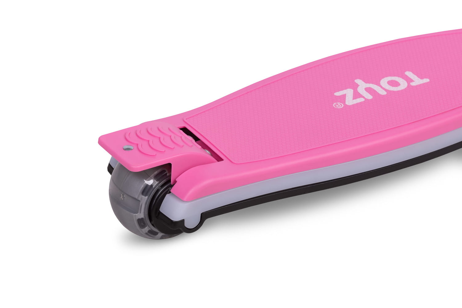 Dla większej frajdy z jazdy, hulajnoga została wyposażona w świecące kółka migoczące w ruchu oraz listwę LED zasilaną na baterie. Kolorowe efekty świetlne nie tylko zwiększają widoczność i bezpieczeństwo dziecka, ale także dodają ekscytacji każdej przejażdżce.