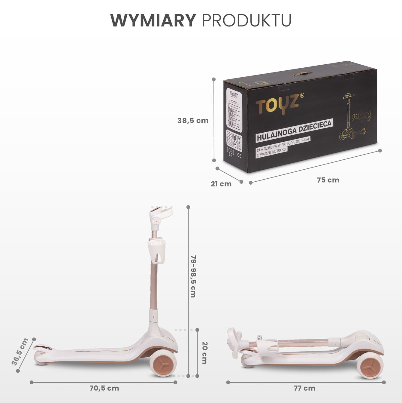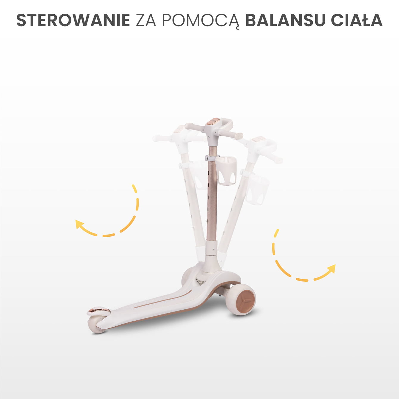 HULAJNOGA BALANSOWA SATURA Ta wyjątkowa hulajnoga to idealny wybór dla dzieci powyżej 3. roku życia, które uwielbiają aktywność i świetną zabawę na świeżym powietrzu. Maksymalne obciążenie wynosi 50 kg. Efektowne światła LED na listwie oraz kołach włączają się automatycznie podczas jazdy, tworząc kolorowe podświetlenie. Dzięki innowacyjnej technologii, działają bez potrzeby użycia baterii, co gwarantuje, że zabawa jest nie tylko ekscytująca, ale również bezpieczna! REGULOWANA KIEROWNICA I UCHWYT NA BIDON Dzięki 5-stopniowej regulacji wysokości kierownicy hulajnoga rośnie razem z dzieckiem, zapewniając komfort użytkowania przez długi czas. Maksymalna wysokość kierownicy to aż 98,5 cm. Hulajnoga została wyposażona w uchwyt na bidon, który umożliwia dziecku łatwy dostęp do napoju podczas długich przejażdżek. To doskonałe rozwiązanie dla małych odkrywców, którzy cenią sobie czas spędzony na świeżym powietrzu i dbają o nawodnienie. STEROWANIE ZA POMOCĄ BALANSU CIAŁA Pozwól dziecku poczuć pełną kontrolę i radość z jazdy na hulajnodze, która umożliwia sterowanie za pomocą balansu ciała! To idealne rozwiązanie dla maluchów, które dopiero uczą się koordynacji ruchowej — skręty są naturalne i płynne, bez konieczności używania kierownicy. ŚWIECĄCE KOŁA I LISTWA LED Model wyposażono w świecące koła i listwę LED, które uruchamiają się automatycznie podczas jazdy, dodając zabawie kolorowego blasku. BEZPIECZEŃSTWO UŻYTKOWANIA Stabilna konstrukcja, szeroki podest i antypoślizgowa powierzchnia zapewniają bezpieczeństwo nawet początkującym użytkownikom. Hulajnoga została wyposażona w tylny hamulec, który umożliwia łatwe i skuteczne zatrzymanie w każdej sytuacji. WYSOKA JAKOŚĆ WYKONANIA Ta hulajnoga została zaprojektowana z myślą o najbardziej wymagających użytkownikach. Wyróżnia się solidną konstrukcją wykonaną z wysokiej jakości materiałów, co gwarantuje nie tylko lekkość, ale również wyjątkową trwałość. LEKKA KONSTRUKCJA I SYSTEM SZYBKIEGO SKŁADANIA Z myślą o najmłodszych użytkownikach stworzono hulajnogę o lekkiej konstrukcji, co ułatwia dziecku samodzielne manewrowanie i przenoszenie. Szybki system składania umożliwia złożenie hulajnogi jednym ruchem, co jest idealnym rozwiązaniem dla osób często podróżujących. Hulajnoga balansowa Satura Ta wyjątkowa hulajnoga to idealny wybór dla dzieci powyżej 3. roku życia, które uwielbiają aktywność i świetną zabawę na świeżym powietrzu. Maksymalne obciążenie wynosi 50 kg. Efektowne światła LED na listwie oraz kołach włączają się automatycznie podczas jazdy, tworząc kolorowe podświetlenie. Dzięki innowacyjnej technologii, działają bez potrzeby użycia baterii, co gwarantuje, że zabawa jest nie tylko ekscytująca, ale również bezpieczna! Regulowana kierownica i uchwyt na bidon Dzięki 5-stopniowej regulacji wysokości kierownicy hulajnoga rośnie razem z dzieckiem, zapewniając komfort użytkowania przez długi czas. Maksymalna wysokość kierownicy to aż 98,5 cm. Hulajnoga została wyposażona w uchwyt na bidon, który umożliwia dziecku łatwy dostęp do napoju podczas długich przejażdżek. To doskonałe rozwiązanie dla małych odkrywców, którzy cenią sobie czas spędzony na świeżym powietrzu i dbają o nawodnienie. Sterowanie za pomocą balansu ciała Pozwól dziecku poczuć pełną kontrolę i radość z jazdy na hulajnodze, która umożliwia sterowanie za pomocą balansu ciała! To idealne rozwiązanie dla maluchów, które dopiero uczą się koordynacji ruchowej — skręty są naturalne i płynne, bez konieczności używania kierownicy. Świecące koła i listwa LED Model wyposażono w świecące koła i listwę LED, które uruchamiają się automatycznie podczas jazdy, dodając zabawie kolorowego blasku. Bezpieczeństwo użytkowania Stabilna konstrukcja, szeroki podest i antypoślizgowa powierzchnia zapewniają bezpieczeństwo nawet początkującym użytkownikom. Hulajnoga została wyposażona w tylny hamulec, który umożliwia łatwe i skuteczne zatrzymanie w każdej sytuacji. Wysoka jakość wykonania Ta hulajnoga została zaprojektowana z myślą o najbardziej wymagających użytkownikach. Wyróżnia się solidną konstrukcją wykonaną z wysokiej jakości materiałów, co gwarantuje nie tylko lekkość, ale również wyjątkową trwałość. Lekka konstrukcja i system szybkiego składania Z myślą o najmłodszych użytkownikach stworzono hulajnogę o lekkiej konstrukcji, co ułatwia dziecku samodzielne manewrowanie i przenoszenie. Szybki system składania umożliwia złożenie hulajnogi jednym ruchem, co jest idealnym rozwiązaniem dla osób często podróżujących.