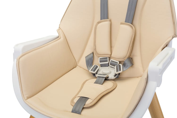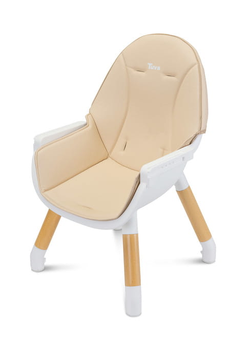Caretero Tuva to krzesełko do karmienia, które łączy wyjątkowy skandynawski styl z funkcjonalnością. Dzięki prostej konstrukcji można je szybko dostosować do potrzeb dziecka. Za pomocą kilku ruchów (bez demontażu nóg) zamienia się z wysokiego krzesełka w stylowy zestaw krzesełko + stolik. Tuva wykonane zostało z wysokiej jakości materiałów, dzięki czemu jest trwałe i bezpieczne. Posiada pięciopunktowe pasy oraz dodatkowe zabezpieczenie przy tacce, które zapobiega zsunięciu się maluszka. Dbając o komfort dziecka i rodzica, krzesełko posiada podwójną, regulowaną tackę z dwoma miejscami na kubek. Siedzisko jest wyłożone miękką i łatwą w czyszczeniu tapicerką. Natomiast drewniane nogi zakończone są antypoślizgowymi nakładkami, które w pełni zabezpieczają przed porysowaniem podłogi.