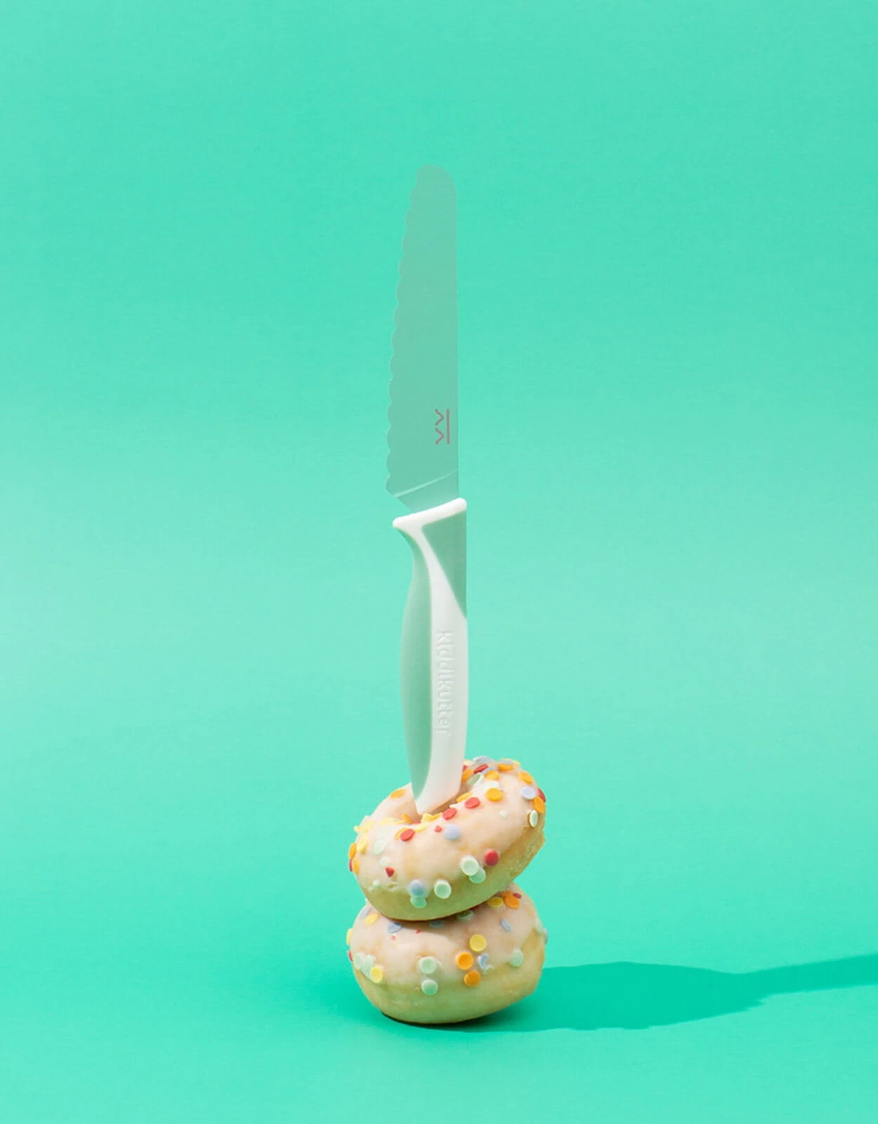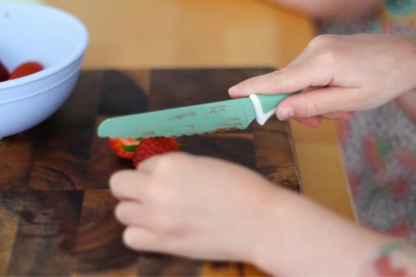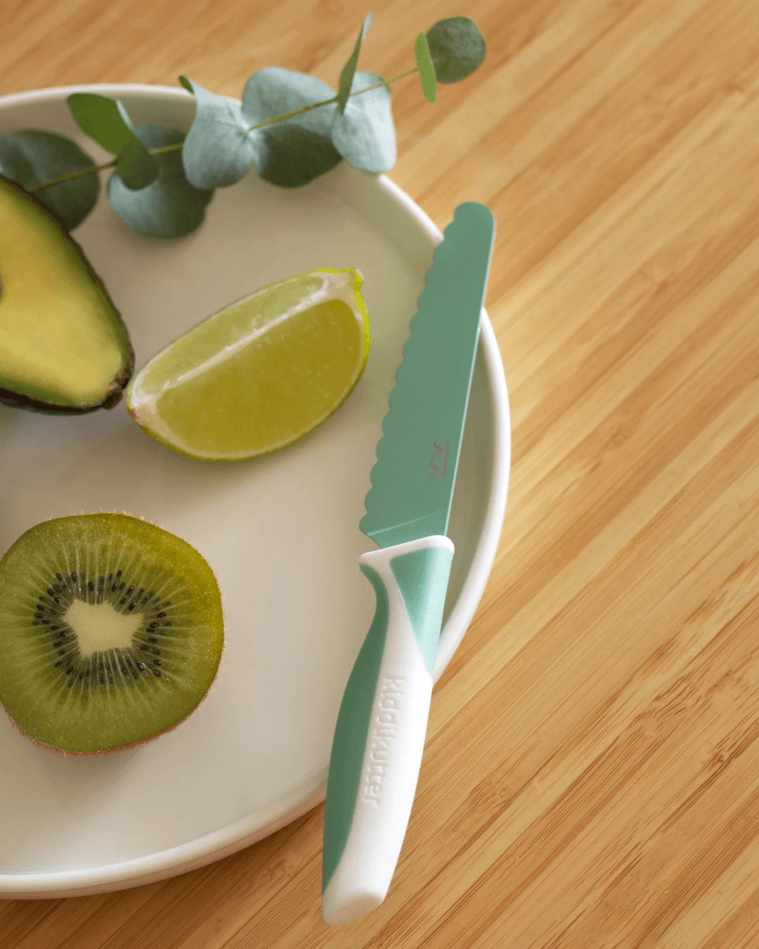 KiddiKutter to wyjątkowy nóż kuchenny zaprojektowany specjalnie z myślą o dzieciach. Kroi jedzenie - nie palce. Dzięki sprytnej, opatentowanej konstrukcji maluch może bezpiecznie kroić owoce, warzywa, mięso czy pieczywo i z dumą uczestniczyć w przygotowywaniu posiłków.