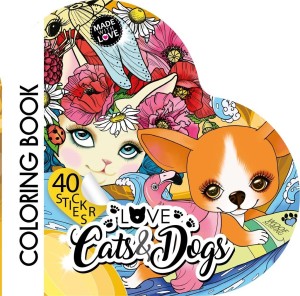 Kolorowanka dla dzieci w kształcie serca, z magicznymi zwierzątkami. W zestawie 40 naklejek. Wyprodukowano na Ukrainie.