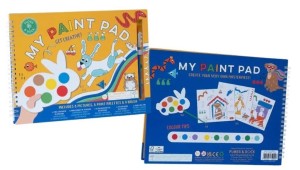 Zestaw kreatywnych kolorowanek z farbkami zawiera 8 wspaniałych obrazków z motywem zwierzaków do pomalowania oraz 8 palet farbek w kształcie zajączka, a także praktyczny pędzelek. Za pomocą delikatnego pociągnięcia pędzelka nawilżonego niewielką ilością wody i farbki można namalować swój własny obrazek! Palety z farbkami i pędzelek są bezpiecznie przechowywane w spiralnie oprawionej okładce, gdy nie są używane, dzięki czemu kolorowanki idealnie nadają się do malowania w podróży! Cechy: