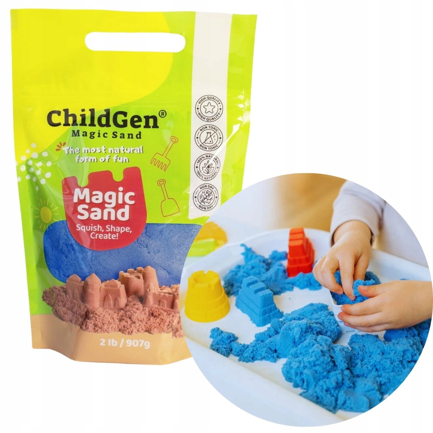 Naturalny piasek kinetyczny ChildGen w kolorze niebieskim - 907g