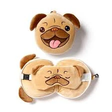 Poduszka podróżna z maską na oczy Pies Mops Adoramals – pluszowa poduszka 2w1 do snu i podróży