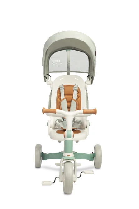 Rozkładana budka skutecznie chroni przed deszczem i intensywnym słońcem, zapewniając komfortową jazdę w każdych warunkach.