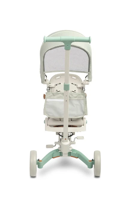 Funkcja wolnego koła daje rodzicom pełną kontrolę nad rowerkiem. Trzystopniowa regulacja wysokości rączki (88-97 cm) pozwala na dopasowanie do wzrostu opiekuna. Praktyczna torebka z tyłu pojazdu pomieści wszystkie niezbędne drobiazgi na spacer.