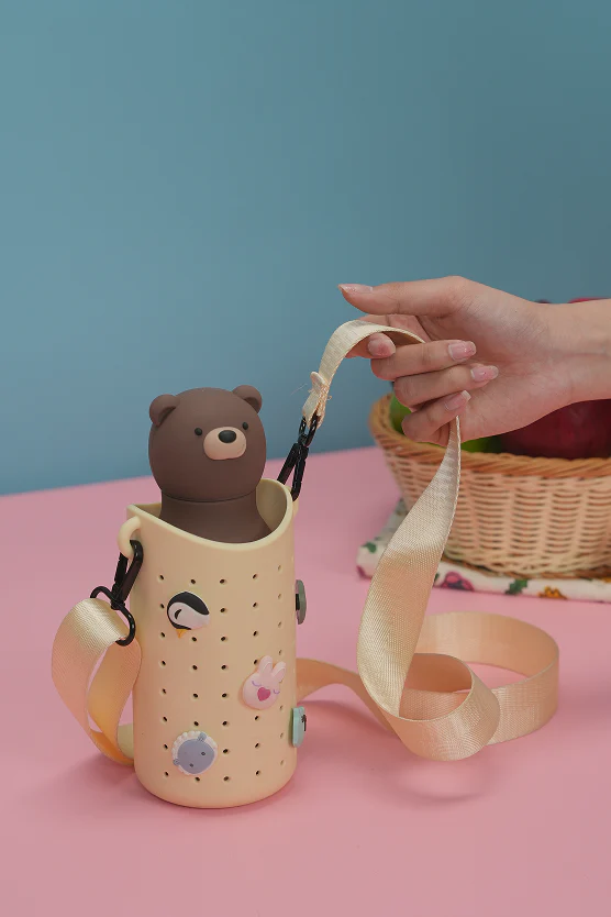 Butelka termiczna na gorące i zimne napoje Podwójne ścianki ze stali nierdzewnej 18/8 i miedziana izolacja Utrzymuje ciepło do 12 godzin, zimno do 24 godzin Miękka pokrywka w kształcie misia - szczelna i przyjemna w dotyku Elastyczna, wyjmowana słomka wielokrotnego użytku Standardowy ustnik do picia gorących napojów W 100% wolna od BPA Pojemność: 460 ml Bezpieczna dla dzieci od 4. roku życia Poręczna konstrukcja Mycie ręczne