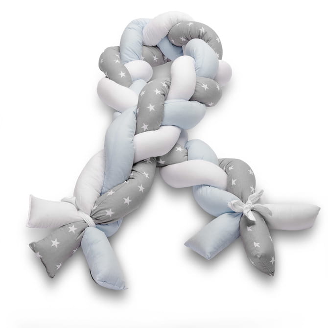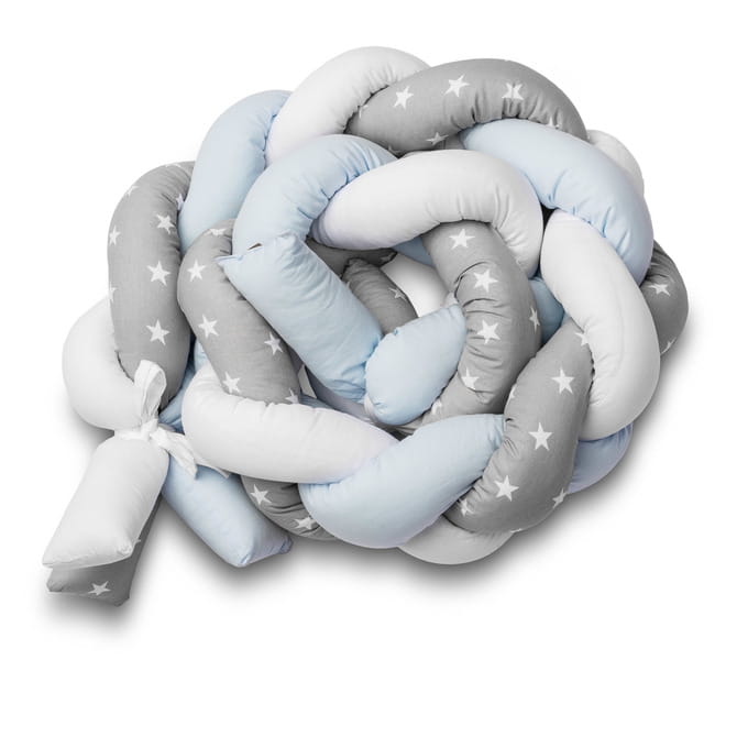 Warkocz – Ochraniacz do łóżeczka Sensillo jest przyjemny w dotyku i miękki. Został wykonany z bawełny oraz antyalergicznej kulki silikonowej. Na końcach każdego warkocza dodane są wstążki, służące do zamocowania go w łóżeczku. Przywiązując warkocz do łóżeczka zapewnisz swojemu dziecku bezpieczny i spokojny sen. Warkocz sprawdzi się również jako gniazdko niemowlęce, ozdoba pokoju lub izolacja od zimnej ściany.