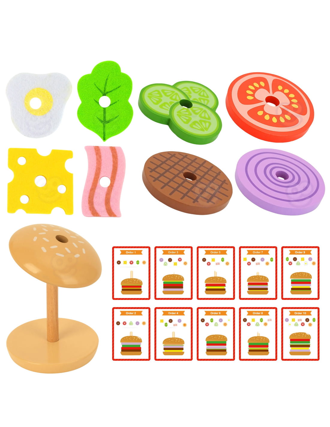 WOOPIE GREEN Drewniany Zestaw Edukacyjny "Burger" 15 el. FSC – Układanka i Zabawa w Restaurację