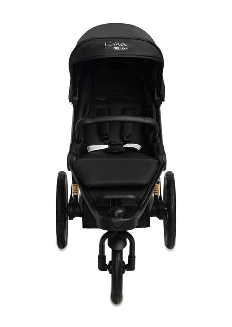 Wózek spacerowy Lima Deluxe został stworzony z myślą o rodzicach kochających aktywne spędzanie czasu. Wygoda tradycyjnego wózka spacerowego w połączeniu z wysoką funkcjonalnością trójkołowej konstrukcji tworzy idealne rozwiązanie dla rodziców będących w ciągłym ruchu. Duże, pompowane koła (tylne o średnicy 40 cm, przednie o średnicy 29 cm) sprawdzą się w jeździe po trudnym terenie. Wózek wyposażony jest w 2 hamulce: ręczny – manetka na rączce wózka; nożny – pomiędzy tylnymi kołami. Rozkładany daszek z wywietrznikiem zapewnia ochronę przed słońcem i wiatrem, a dołączone do zestawu folia przeciwdeszczowa i okrycie na nogi zwiększą komfort spacerów podczas trudnych warunków pogodowych. 5-punktowe pasy wraz z przednim pałąkiem zabezpieczają dziecko przed wypadnięciem z wózka. Lima Deluxe została również wyposażona w zapinany kosz mieszczący wszystkie potrzebne akcesoria codziennego użytku. Kąt pochylenia oparcia można płynnie dostosować do potrzeb dziecka, a łatwy w obsłudze mechanizm składania czyni wózek wygodnym w transporcie.