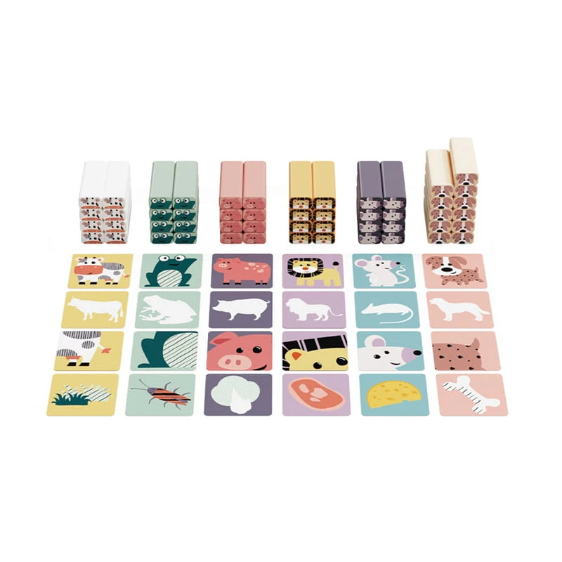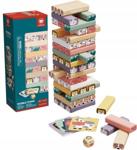 Wieża zręcznościowa "Jakie to zwierzę?" — drewniana gra edukacyjna 51 elementów