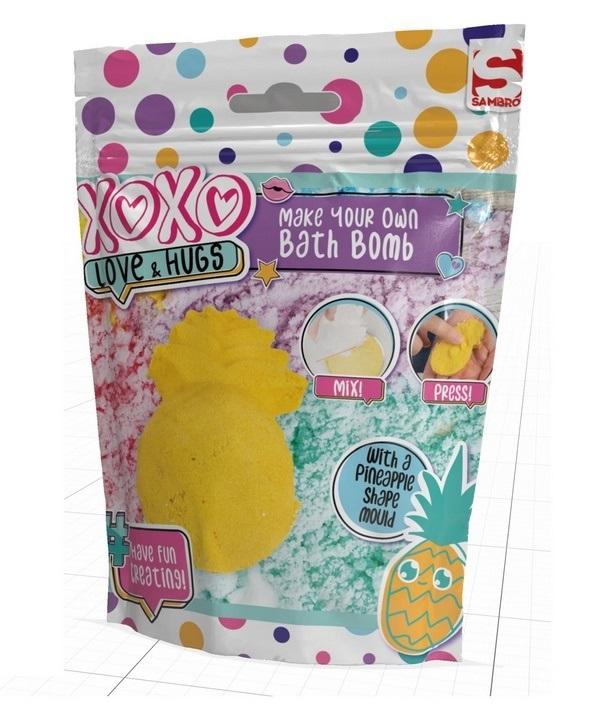 Zestaw do tworzenia Bomb kąpielowych. Tworzymy specjalną kule do kąpieli, która w wodzie będzie buzowała (musuje- powoli rozpuszczając się). Możemy tworzyć dowolne kule z dostępnych saszetek. Mieszajmy kolory i wzory z dodatkami specjalnych confetti do upiększenia i spotęgowania wizualnych efektów. W zestawie jedno uzupełnienie oraz specjalna foremka w danym kształcie. Saszetki mogą posłużyć również jako uzupełnienie do dużego zestawu XOXO KULE KĄPIELOWE ZESTAW DIY - 10 Bomb XOXO-2162. Aby przygotować kulę należy wsypać saszetkę z proszkiem (mogą być mieszane kolory) oraz jedną miarkę wody. Wszystkie składniki dokładnie miksujemy do jednolitej masy. Następnie zmiksowany proszek umieszczamy w załączonej foremce i dociskamy masę. Wskazówka aby kula była pełnych kształtów formuj ją stopniowo dodając coraz więcej zmiksowanego proszku przy pomocy dołączonej miarki. Kule są wykonane z bezpiecznych środków bazujących na naturalnych składnikach. Po skończonej kąpieli należy spuścić wodę do odpływu i opłukać ciało oraz wannę.