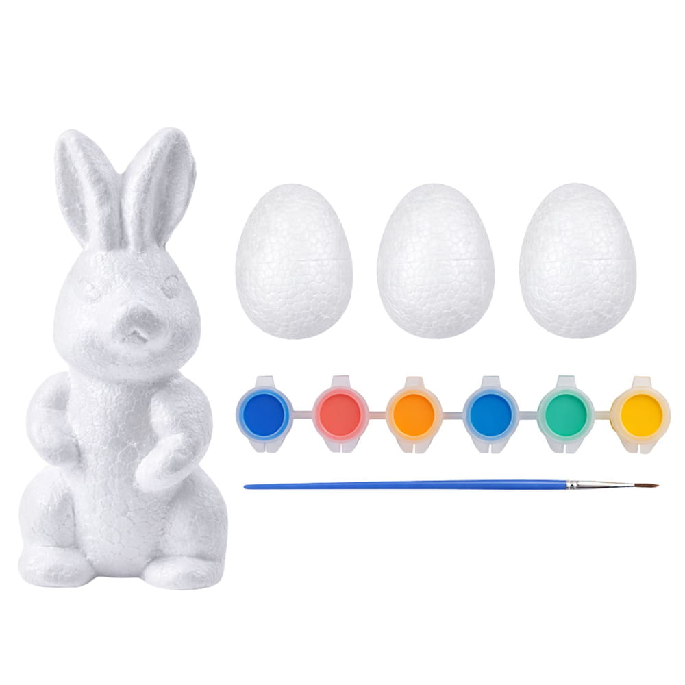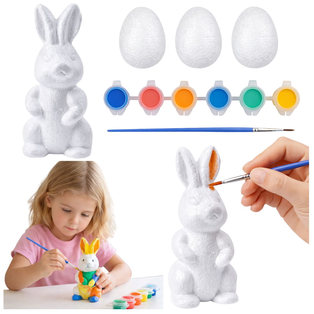 ⭐ STYROPIANOWE JAJKA + ZAJĄC DO MALOWANIA DLA DZIECI – 6 KOLORÓW FARBEK ⭐
