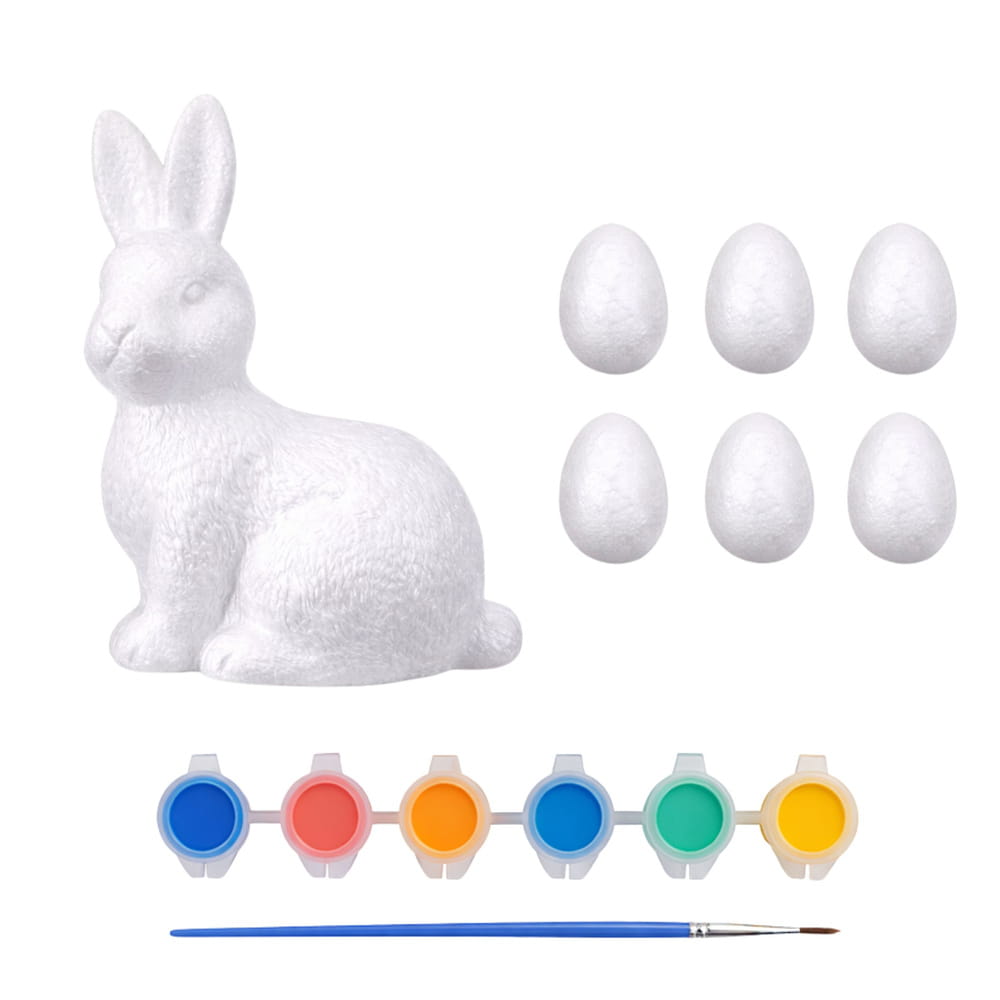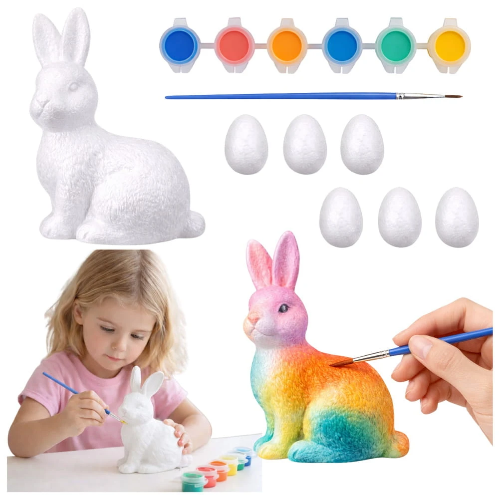⭐ STYROPIANOWE JAJKA + ZAJĄC DO MALOWANIA DLA DZIECI – 6 KOLORÓW FARBEK ⭐